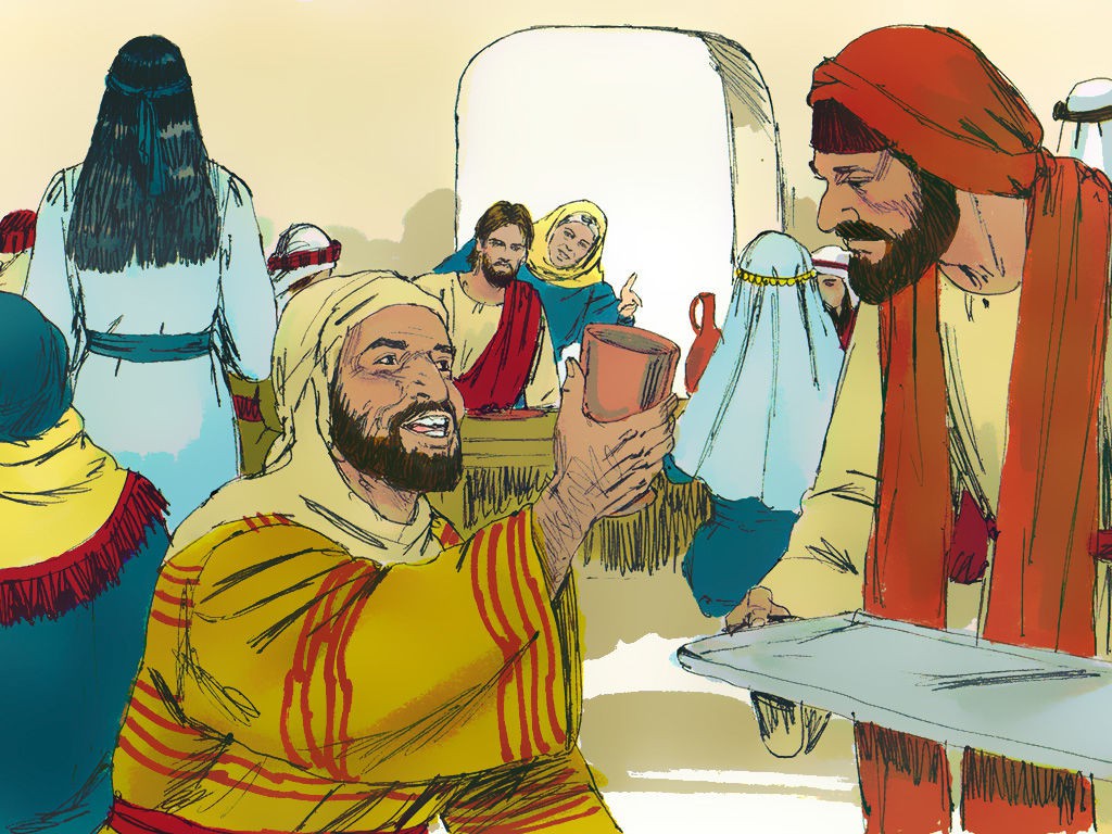 耶稣在迦拿的婚宴中行了第一个神迹,将水变成酒。