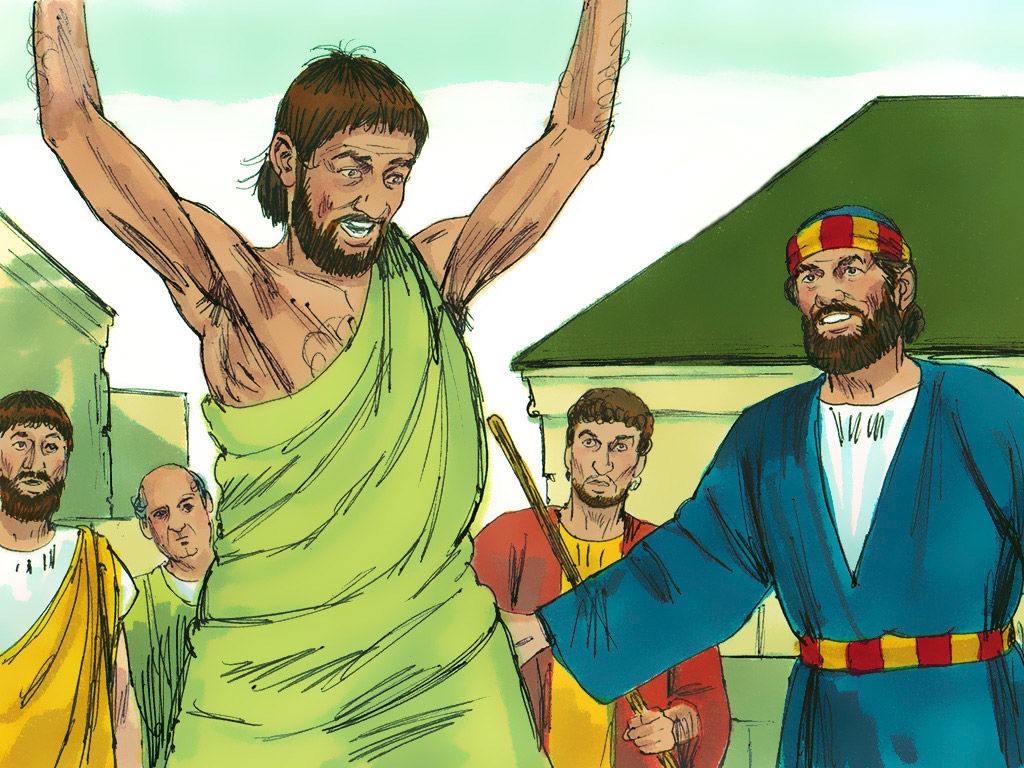 彼得遇见以尼雅,这人生病躺卧了八年,彼得奉耶稣的名,使他痊愈。