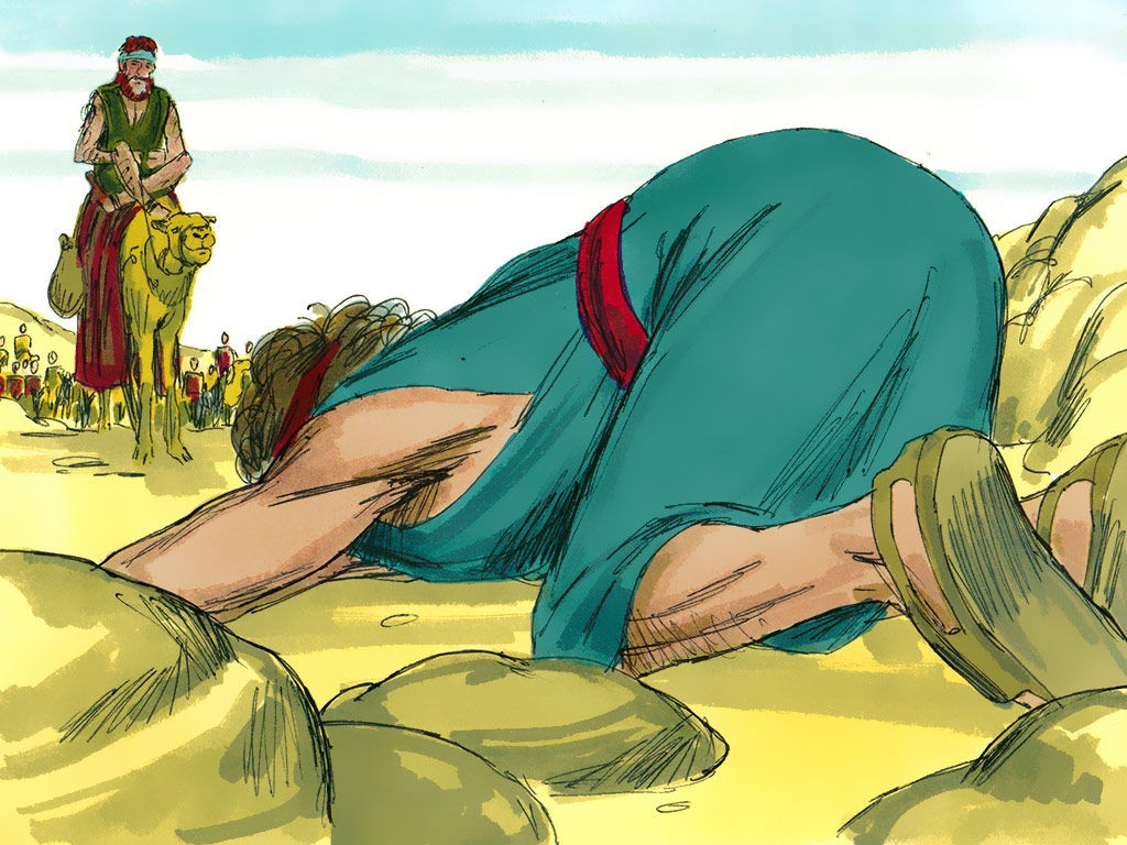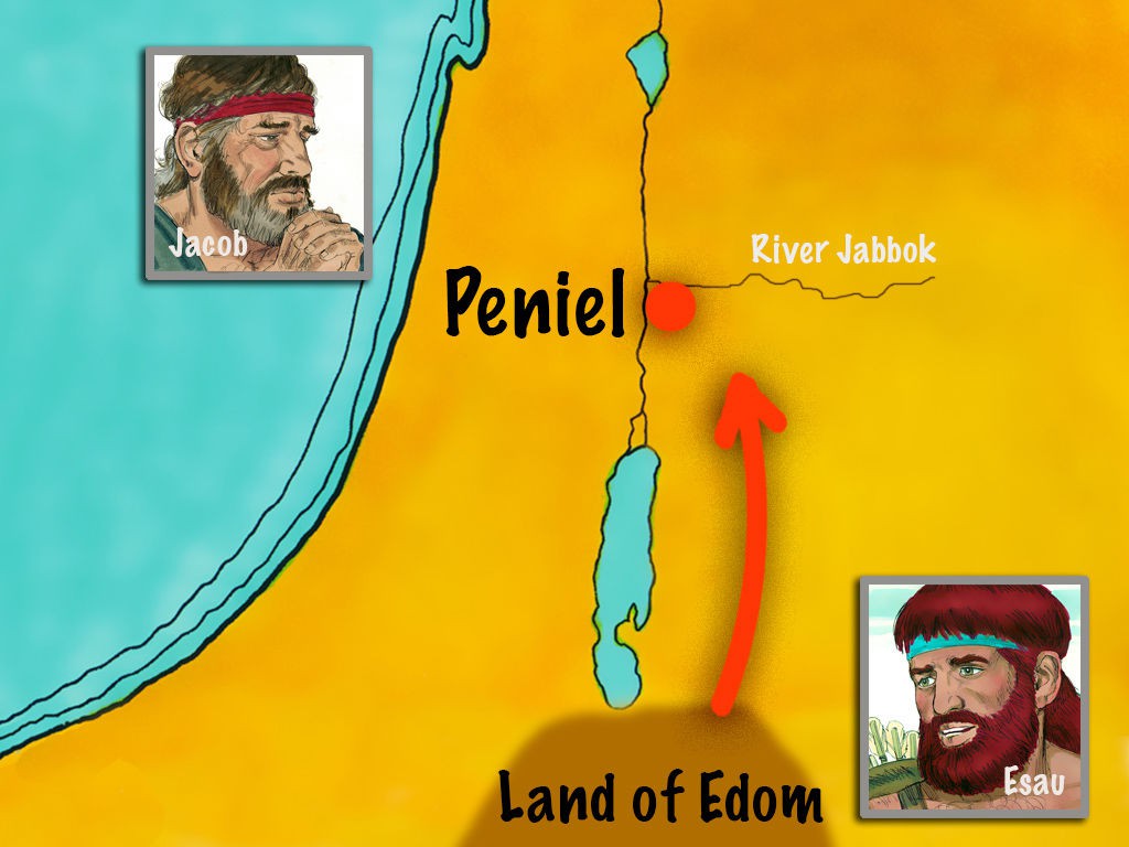 雅各与一个陌生人摔跤,然后与以扫会面。